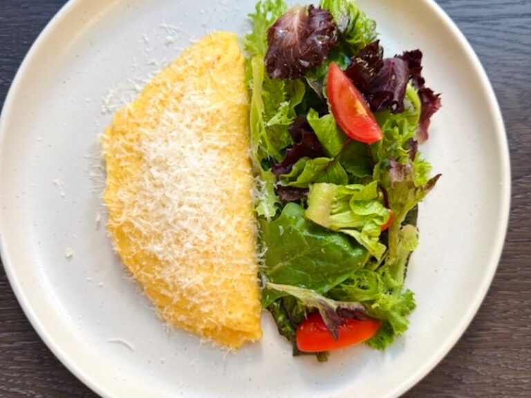 Ніжний омлет з трьох яєць, сиром пармезан, міксом зелені та томатами, оливкова олія Арбекіна