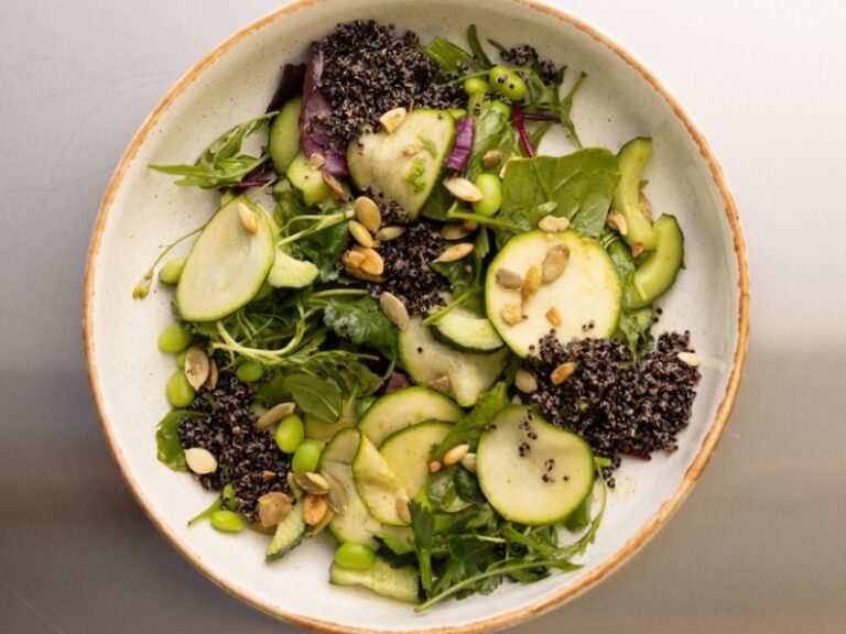 Зелений салат з кіноа та дресінгом з каффір лаймом