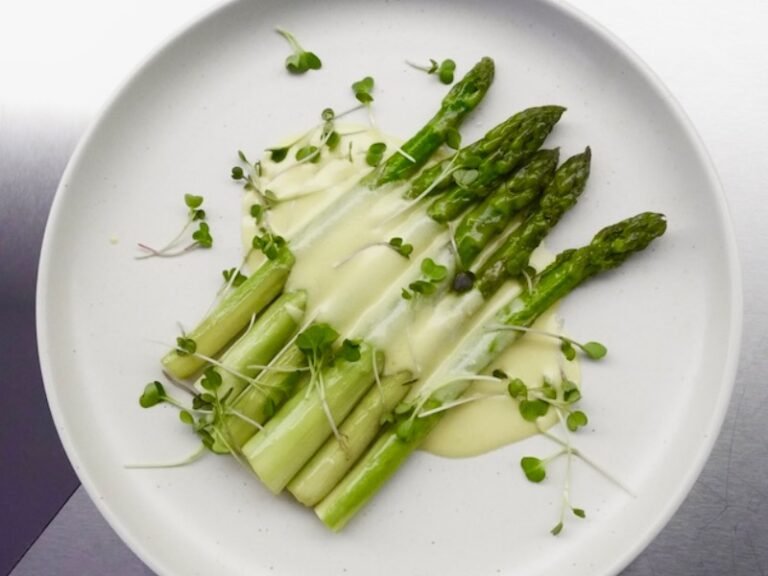 Припущена сезонна спаржа під соусом голандез