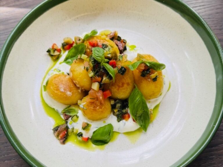 Молода картопля з мусом з фети та овочевим тар-таром