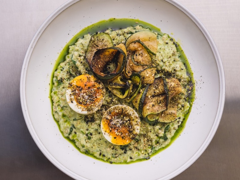 Зелена гречка карі зі смаженим цукіні та яйцем